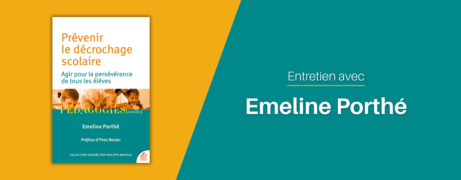 Enseignante et formatrice dans le secondaire et le supérieur notamment en éducation prioritaire, Émeline Porthé s’est engagée dans la lutte contre le décrochage scolaire, en particulier la prévention de celui-ci. L’appréhension globale de l’élève qu’elle a mise en place a permis la persévérance au sein de ses classes. Dans son ouvrage Prévenir le décrochage scolaire. Agir pour la persévérance de tous les élèves (en librairie le 15 janvier), elle propose une vision systémique de la « persévérance scolaire », c'est à dire une prise en charge globale pour permettre à chaque élève de vivre sa scolarité de manière apaisée, comme une occasion de développement et de dépassement.